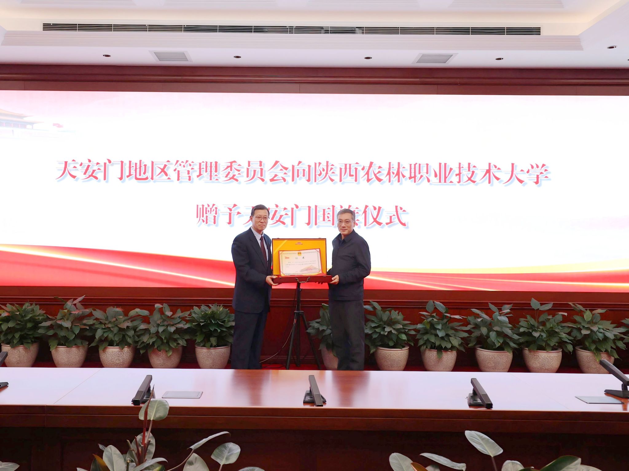 10月31日,北京市人民政府天安门地区管理委员会在天安门地区运行调度中心向陕西农林职业技术大学赠送天...