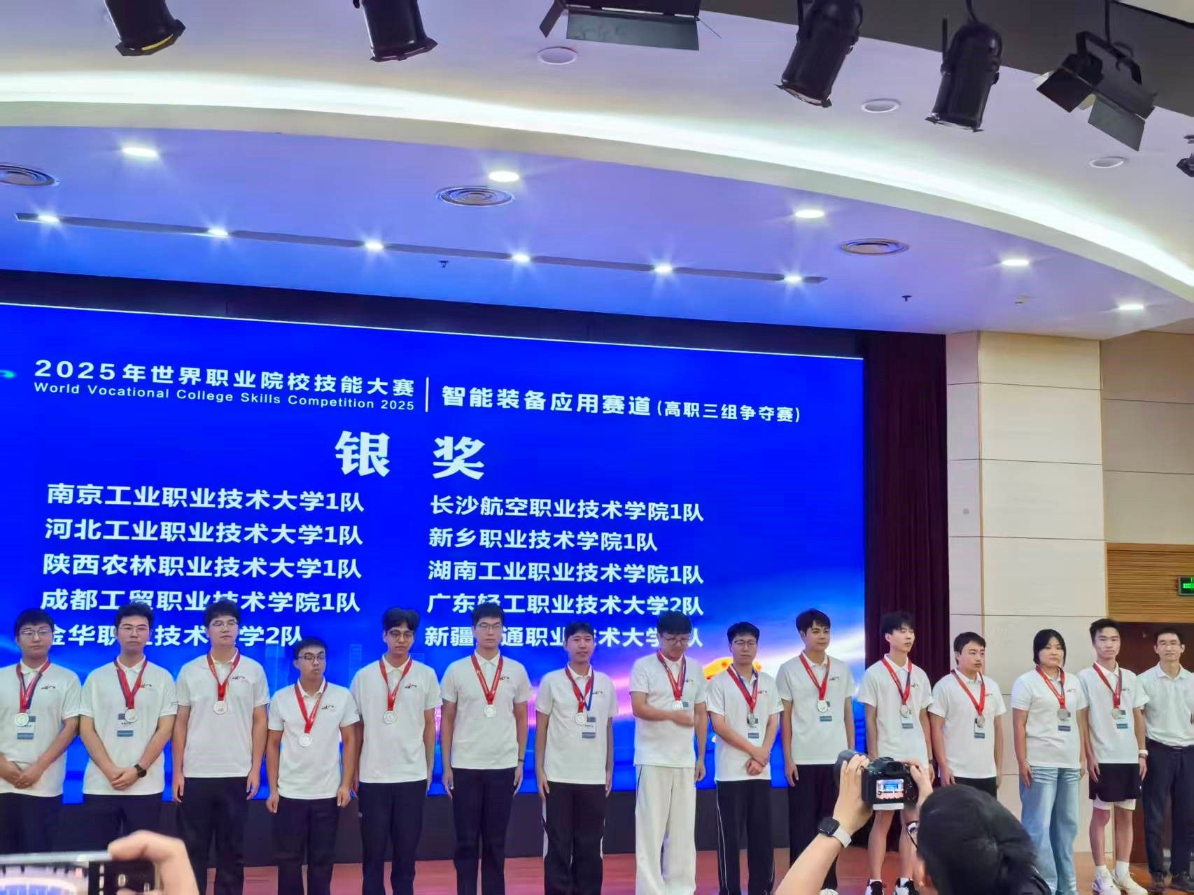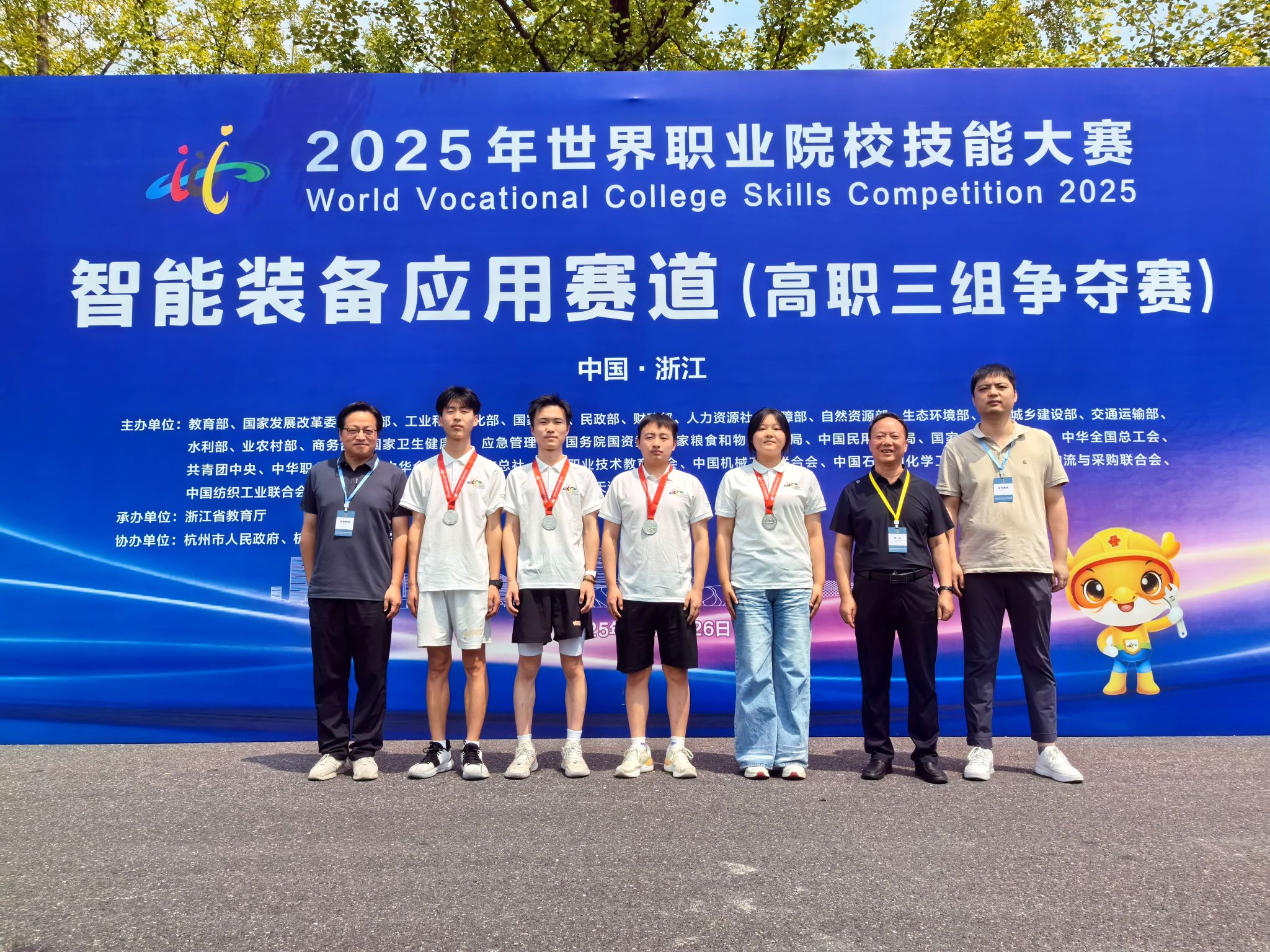 8月20日至26日,2025年世界职业院校技能大赛总决赛争夺赛智能装备应用赛道比赛在杭州职业技术大学、浙江机电职业技术大学、嘉兴职业技术学院成功举办,共有来自全国省、自治区、直辖市的201支队伍参赛。太阳成官网机电工程学院由教师李培东、何国荣指导,郑思远、王沙龙、杨柯怡、王佳晨组成的学生团队,凭借扎实的专业技能,荣获银奖。