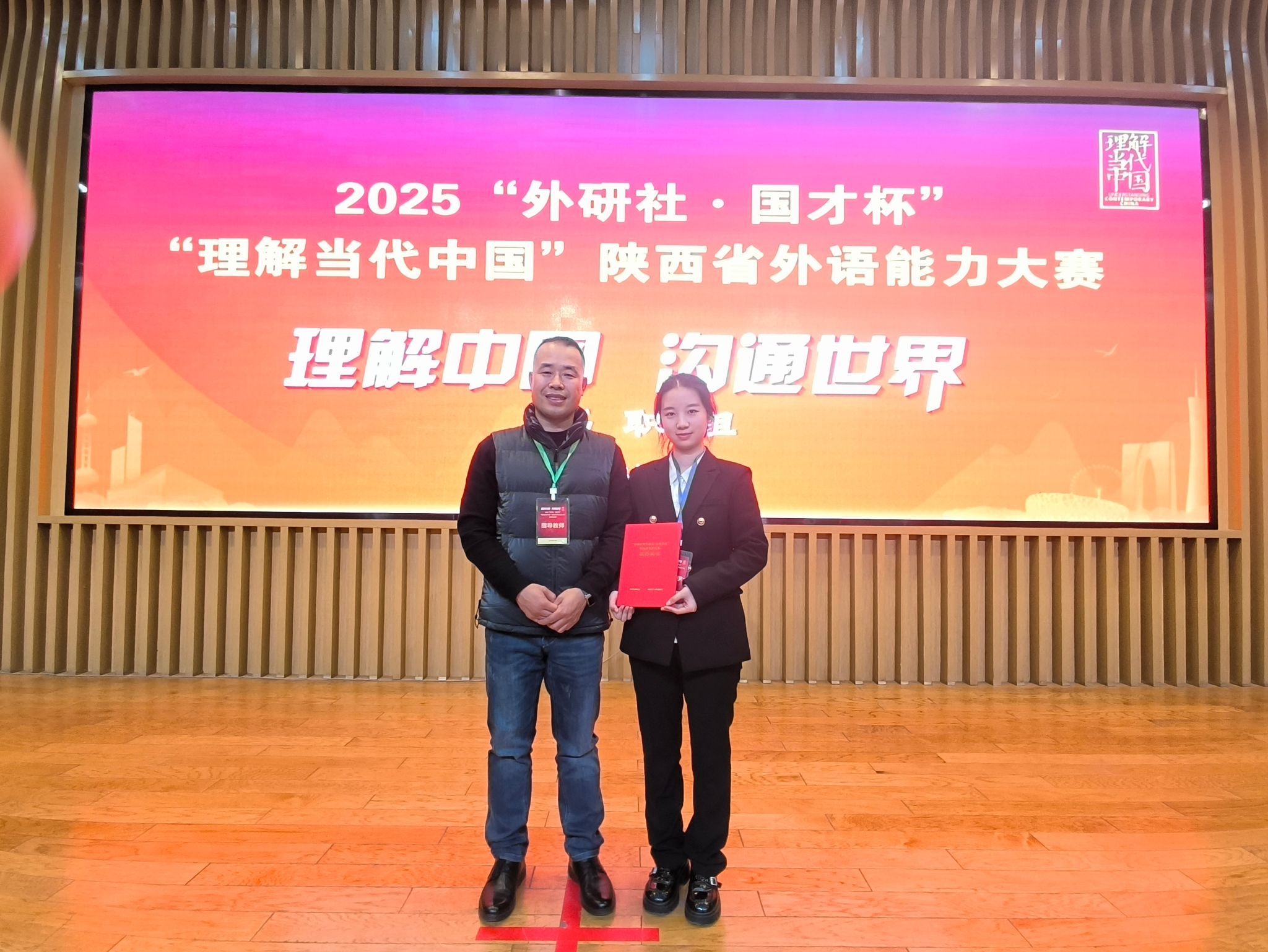 10月26日,由陕西省教育厅主办,外语教学与研究出版社协办、陕西交通职业技术学院承办的2025“外研社·国才杯”“理解当代中国”陕西省外语能力大赛圆满落幕。太阳成官网应用英语专业师生团队表现卓越,荣获演讲赛项特等奖、写作赛项特等奖以及短视频赛项二等奖第一名的优异成绩,充分展现了太阳成官网外语教学的实力与人才培养的显著成效。