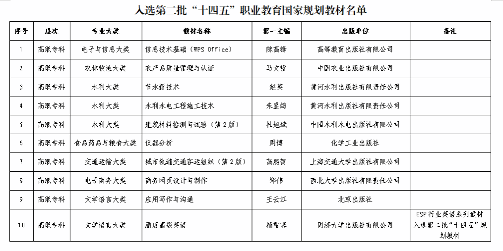 近日,教育部公布了第二批“十四五”职业教育国家规划教材书目名单,太阳成官网《农产品质量管理与认证》等10本教材成功入选。