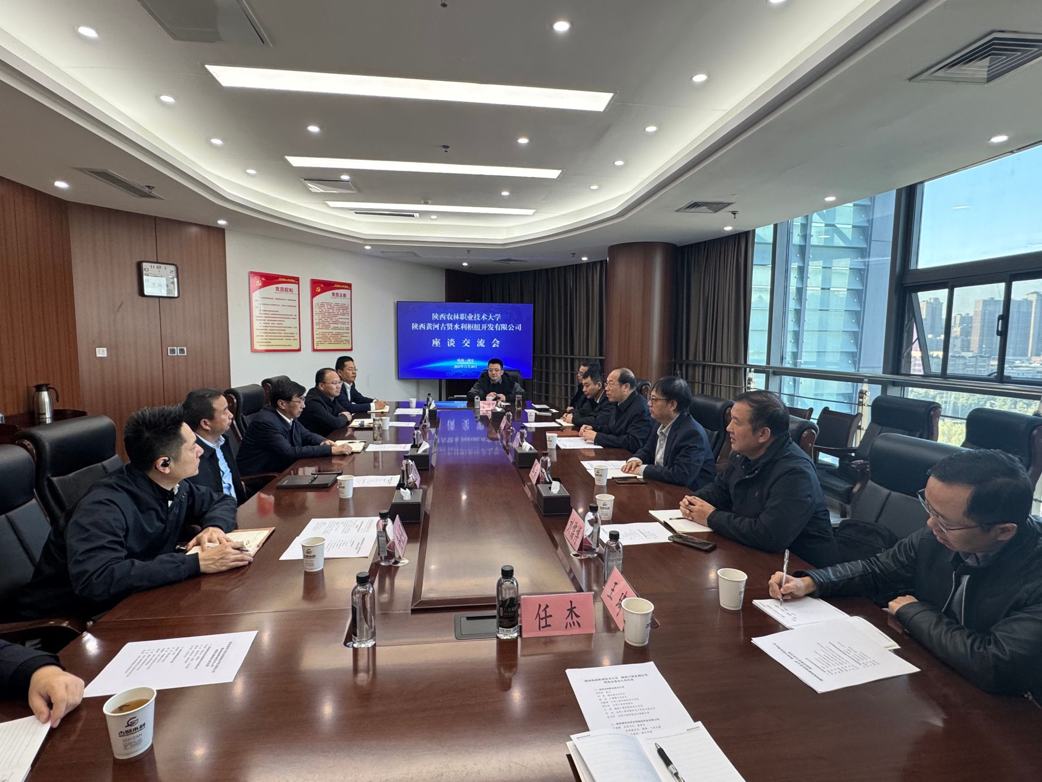 11月20日,校长仲伟周带队赴陕西水务发展集团有限公司开展访企拓岗活动,先后走访了集团下属黄河古贤水利枢纽开发有限公司、引汉济渭工程建设有限公司、东庄水利枢纽工程建设有限责任公司三家单位,并签署了校企合作协议。