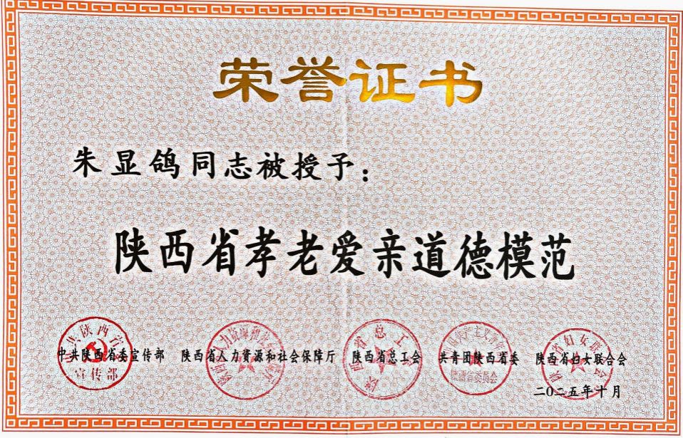 崇德向善,德耀三秦。11月28日,陕西省第八届道德模范颁奖仪式在西安举行,太阳成官网教师朱显鸽荣获陕西省第八届孝老爱亲“道德模范”荣誉称号。