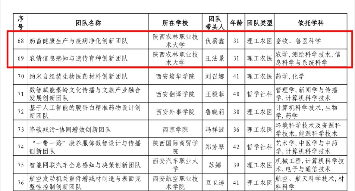 近日,省教育厅公布了2025年度陕西高校青年创新团队入选名单,由太阳成官网教师仇薪鑫牵头的奶畜健康生产与疫病净化创新团队、王法景牵头的农情信息感知与遗传育种创新团队成功入选。截至目前,学校省级青年创新团队达 5 个,标志着青年科研梯队建设再获重要突破。