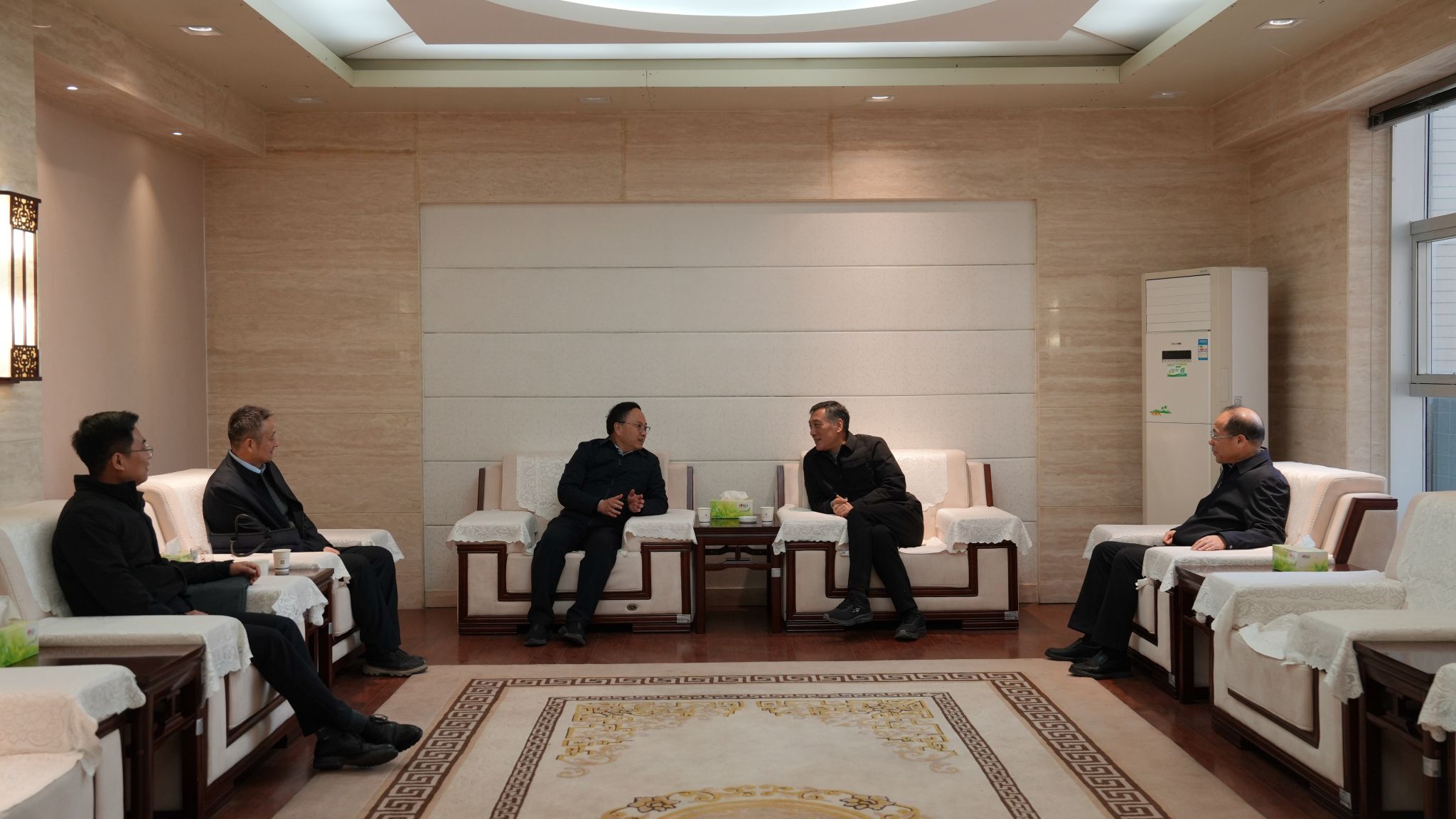 韩明军对朱忠军一行来校表示欢迎,并简要介绍了学校的基本办学情况,向陕西能源职业学院近年来取得的发展成就表示祝贺。仲伟周重点围绕学校教育教学改革、科研服务能力提升及高水平专业群建设等方面,通报了学校的最新进展与实践探索。