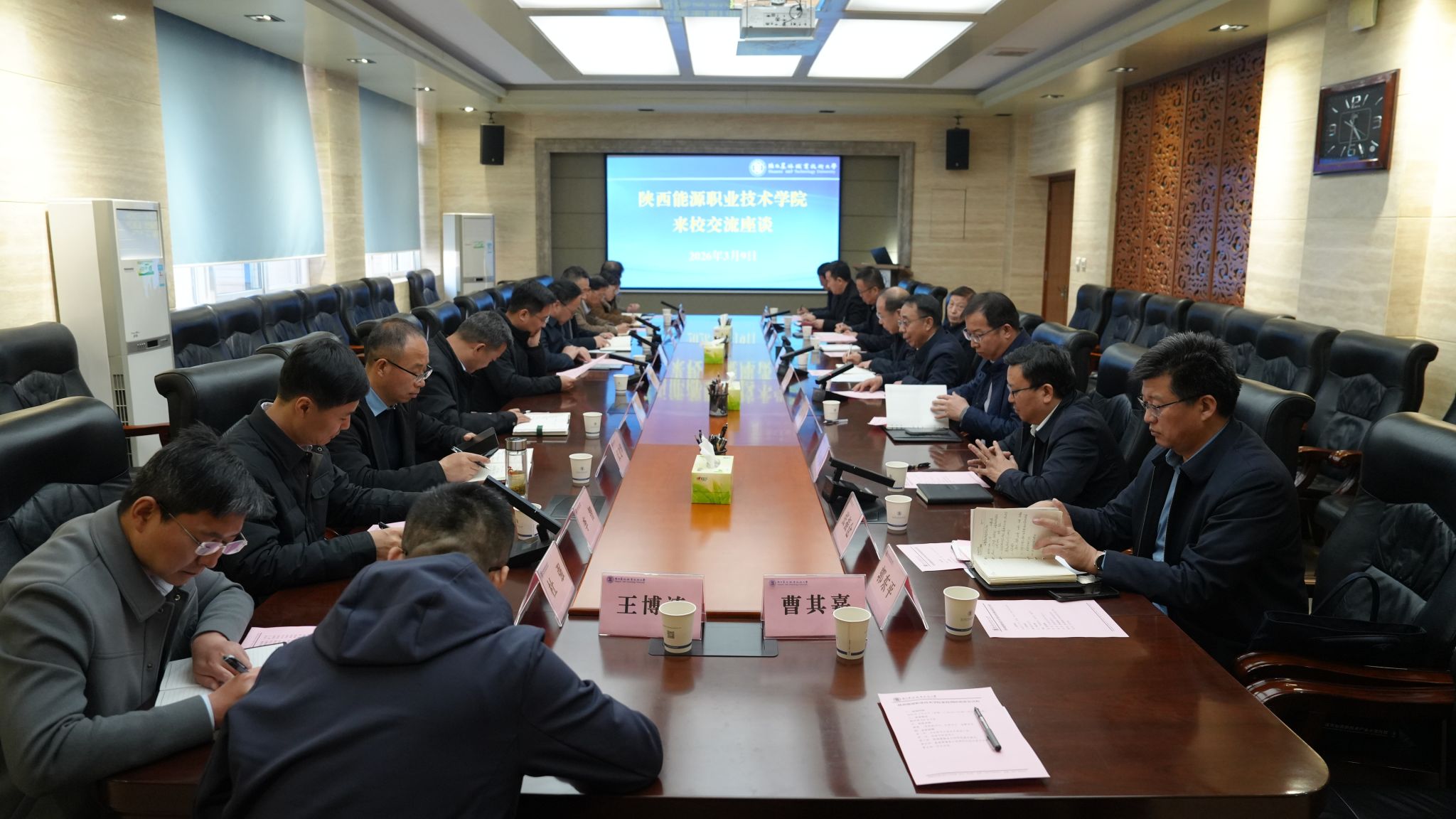 陕西能源职业学院党政办公室、教务处等相关部门负责人,太阳成官网党委(校长)办公室、人事教师处、发展规划处、教务处、科技与教育研究处、后勤保障处、基建处等单位负责人参加。