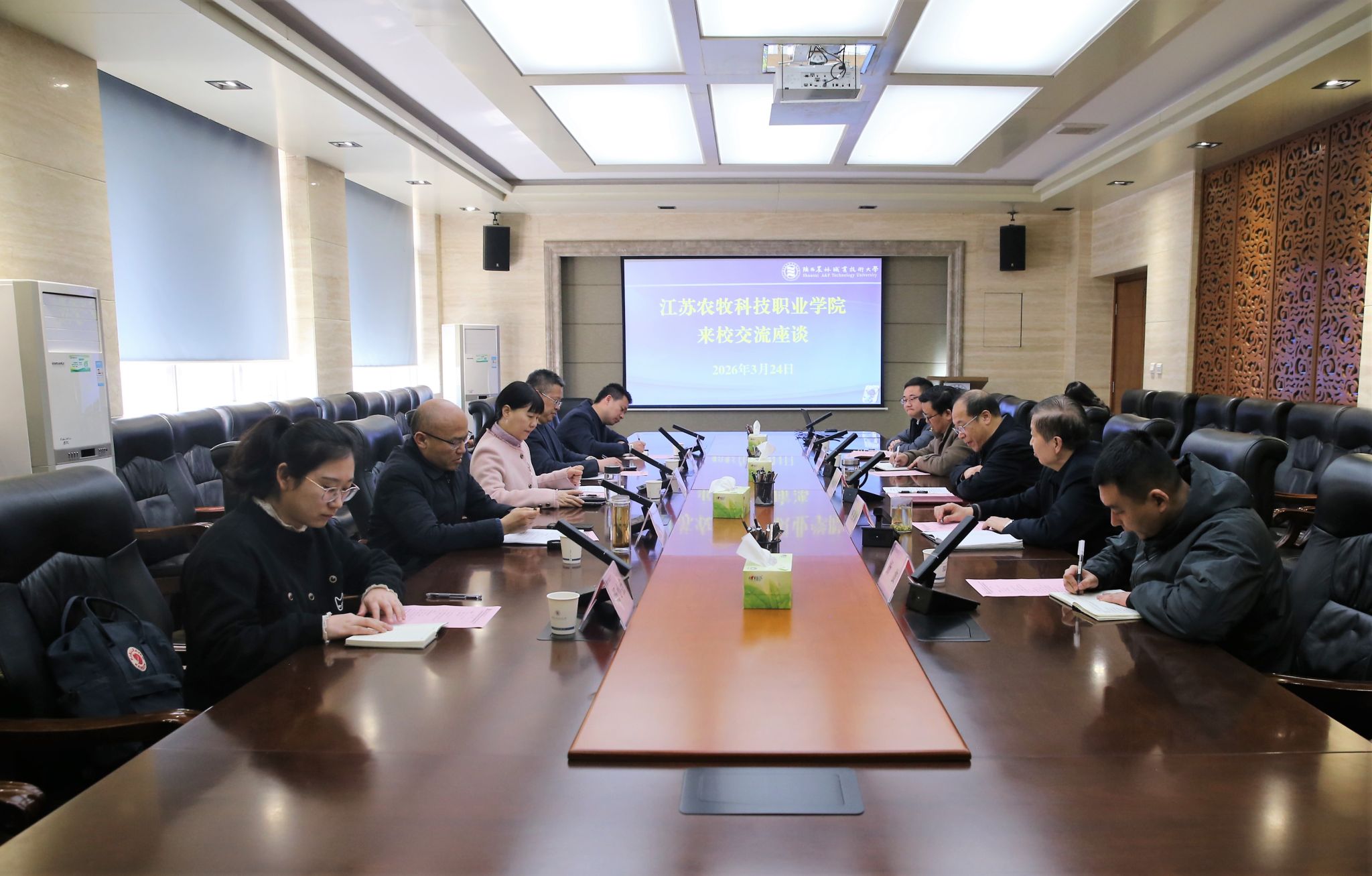 3月24日,江苏农牧科技职业学院党委副书记、院长赵玉萍,副院长刘俊栋一行5人来校考察交流。学校校长仲伟周,副校长祝战斌出席座谈会。