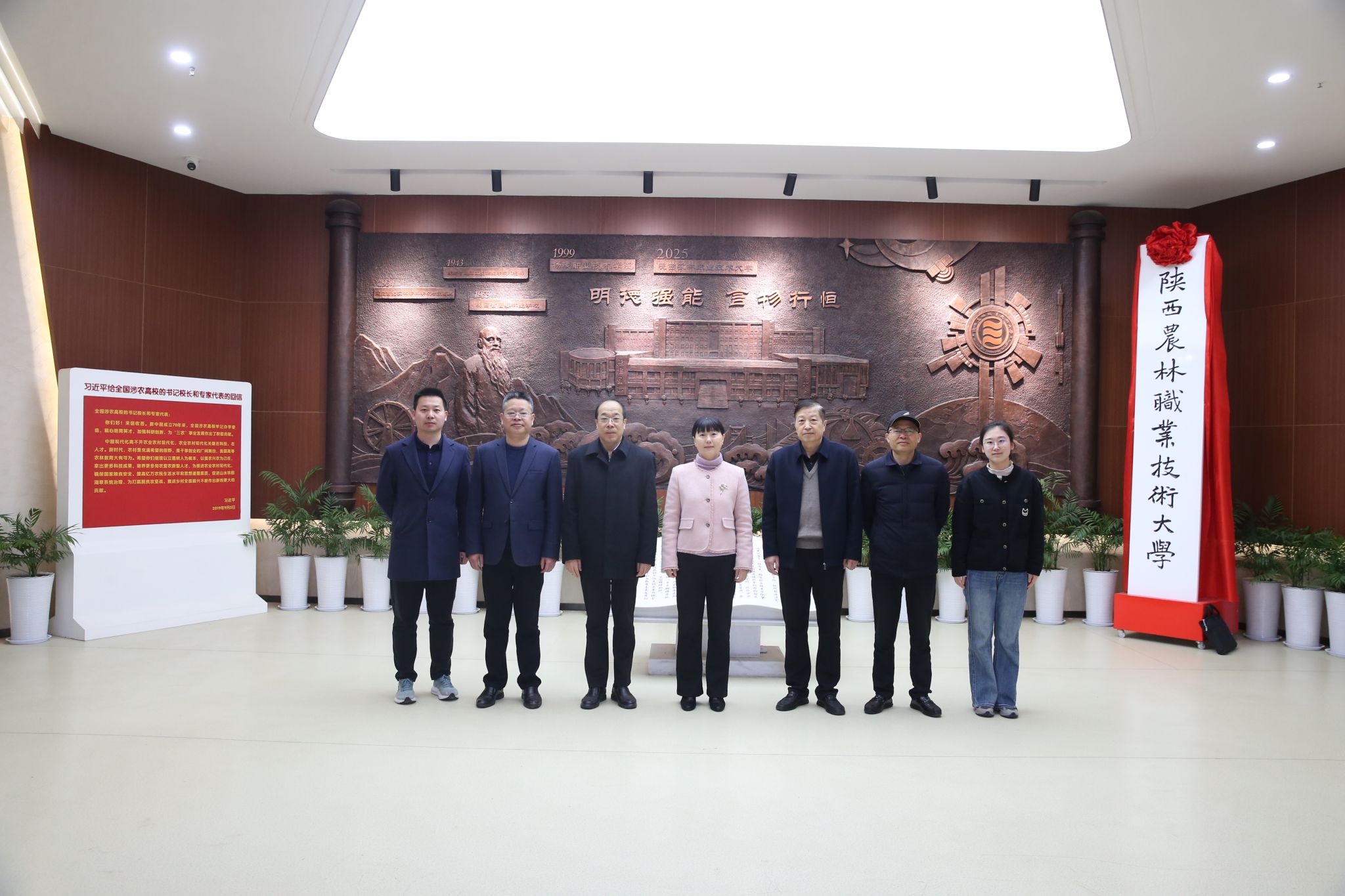 会前,赵玉萍一行参观了学校校史馆、耕读文化馆,实地考察了智慧农业虚拟仿真中心、百年伟业·红色三农研学馆和设施草莓栽培日光温室。