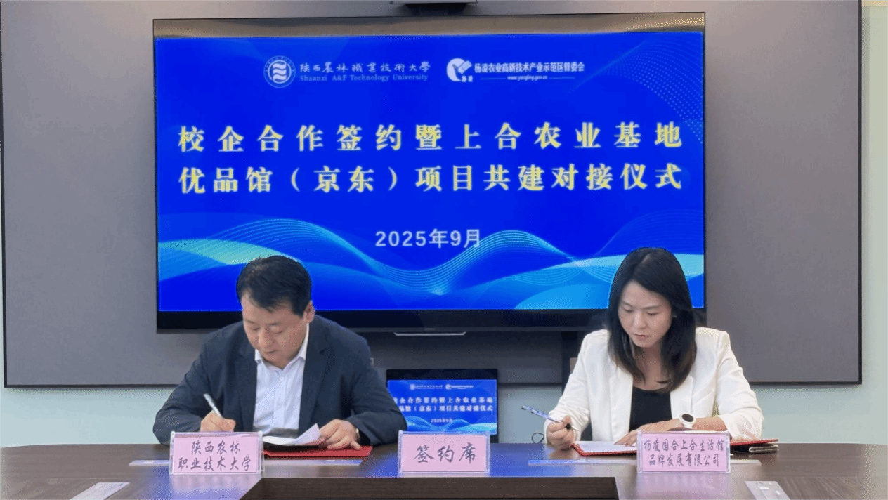 9月16日,经济与贸易学院与杨凌国合上合生活馆品牌发展有限公司校企合作签约暨上合农业基地优品馆(京东)项目共建签约仪式在杨凌现代农业国际合作有限公司举行。杨凌现代农业国际合作有限公司副总经理陈兵,杨凌国合上合生活馆品牌发展有限公司总经理黄宁,经济与贸易学院负责人和相关教师代表参加座谈。