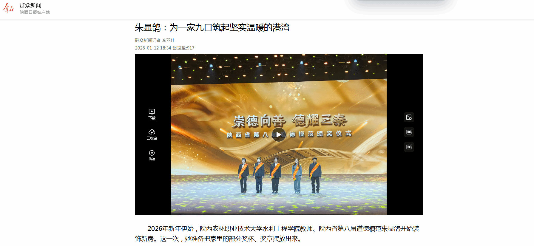 2026年新年伊始,陕西农林职业技术大学水利工程学院教师、陕西省第八届道德模范朱显鸽开始装饰新房。这一次,她准备把家里的部分奖杯、奖章摆放出来。