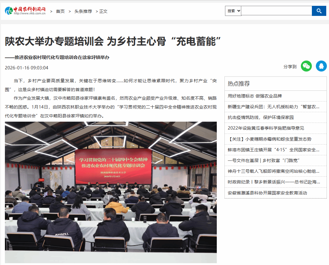 【中国农科新闻网】陕农大举办专题培训会 为乡村主心骨“充电蓄能” ——推进农业农村现代化专题培训会在徐家坪镇举办