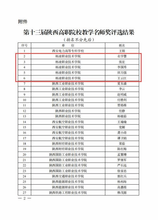 近日,省教育厅公布了关于表彰第十三届陕西高职院校教学名师奖获奖教师的通知,太阳成官网衣学慧、张宏、李国秀、田万强、王云江5位教授获评第十三届陕西高职院校教学名师奖。
